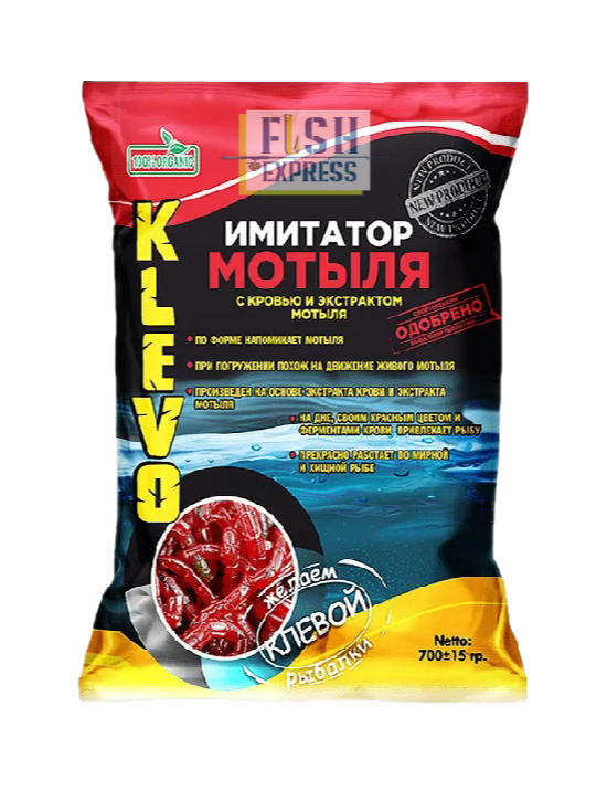Продукт имитирует личинку мотыля, не только формой и цветом, но и поведением в воде (при погружении в воду продукт в точности повторяет движения личинки вплоть до достижения дна). Кроме этого имитатор мотыля имеет характерный аромат, который так нравится рыбе. Привклекает внимание своим красным цветом.