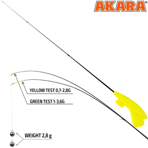 Akara RHS-G3R и RHS-Y3R пенопластовые зимние удочки предназначены для ловли без дополнительного кивка, т.к сам хлыстик служит кивком. Модель прекрасно подходит для безмотыльной рыбалки. Вес 7.5г.